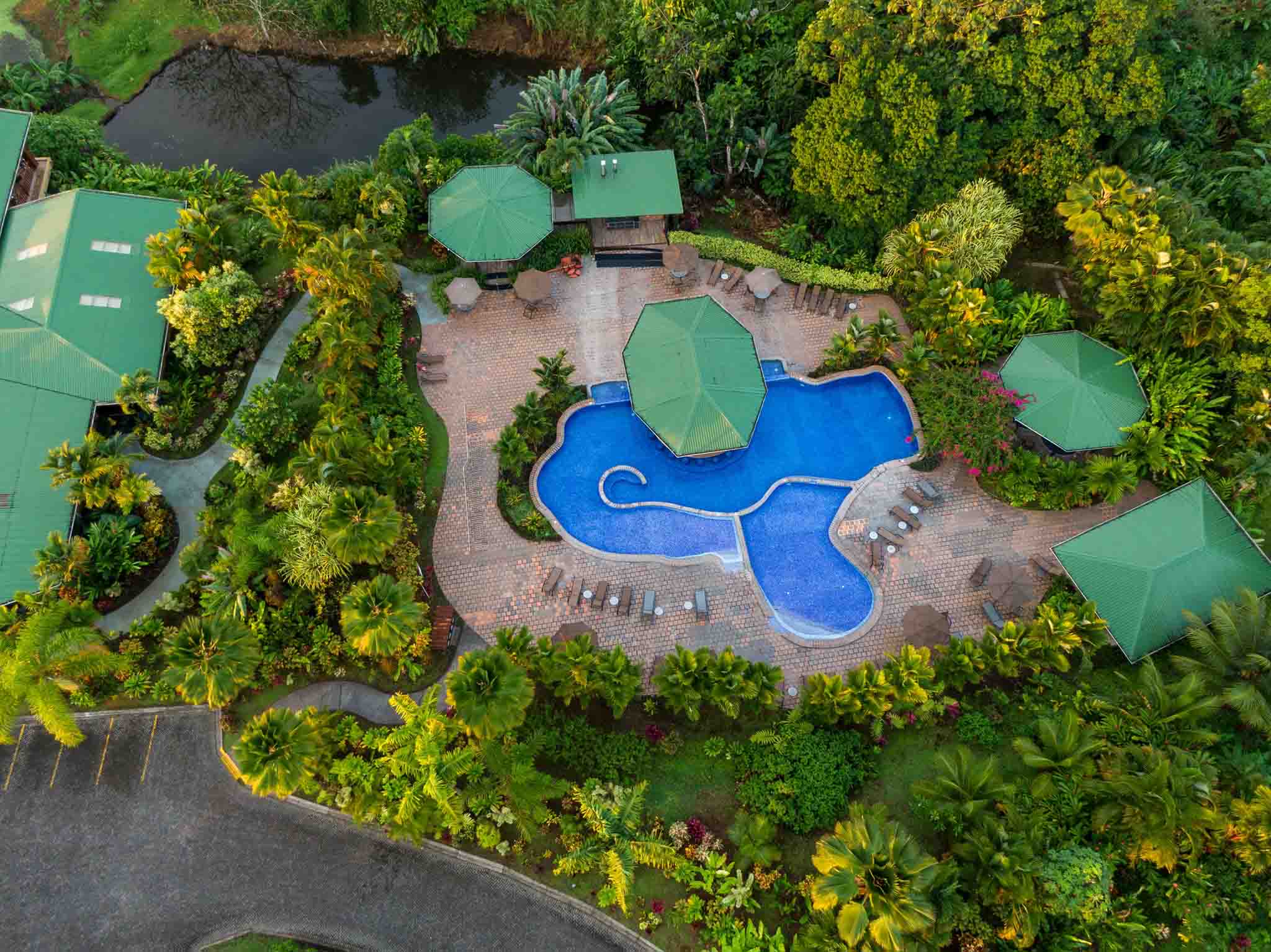 En Arenal Manoa, puedes observar aves e interactuar con la naturaleza desde tu habitación mientras te relajas en tu patio privado, o puedes ser un poco más activo explorando los innumerables senderos del resort. 🐦🌲