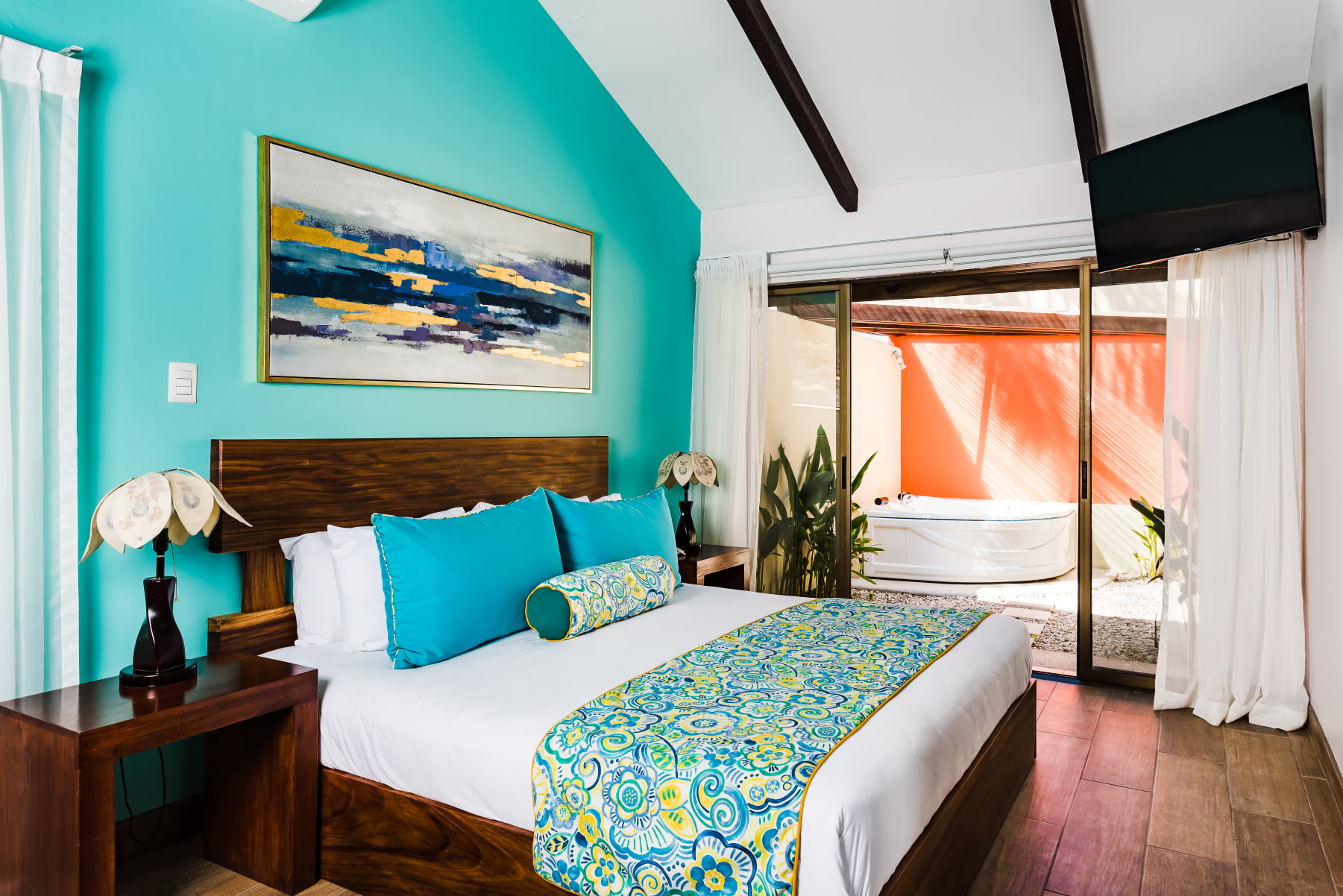 Bahia del Sol Beach front Boutique Hotel ofrece a los visitantes todas las comodidades modernas, incluyendo una piscina al aire libre, jacuzzi, spa, tienda de souvenirs y tours, todo en un entorno tropical impresionante que incluye jardines tropicales y exuberantes con especies nativas y exóticas, así como una amplia frente a la playa, lo cual es ideal para ceremonias de boda mientras se pone el sol.
