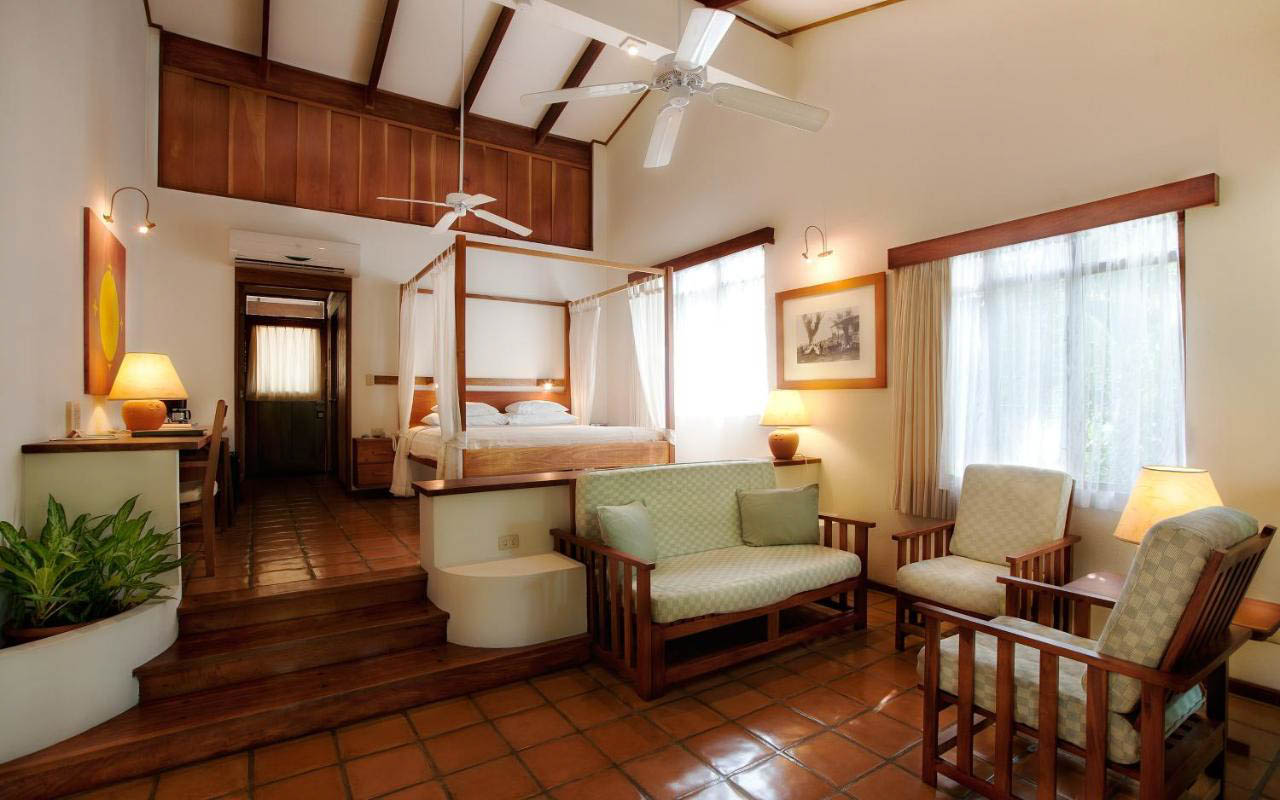 El hotel cuenta con 35 habitaciones acogedoras, todas ellas en medio de exuberantes jardines tropicales. Seis bungalows, seis unidades frente al mar, 22 habitaciones superiores y una suite de cuatro habitaciones espaciosas y están equipadas con materiales locales, artesanías regionales y fotografías antiguas de Costa Rica. Cada habitación tiene una cama king size y vistas a los hermosos jardines tropicales o al océano, y cuenta con un balcón o terraza para disfrutar de la brisa marina.