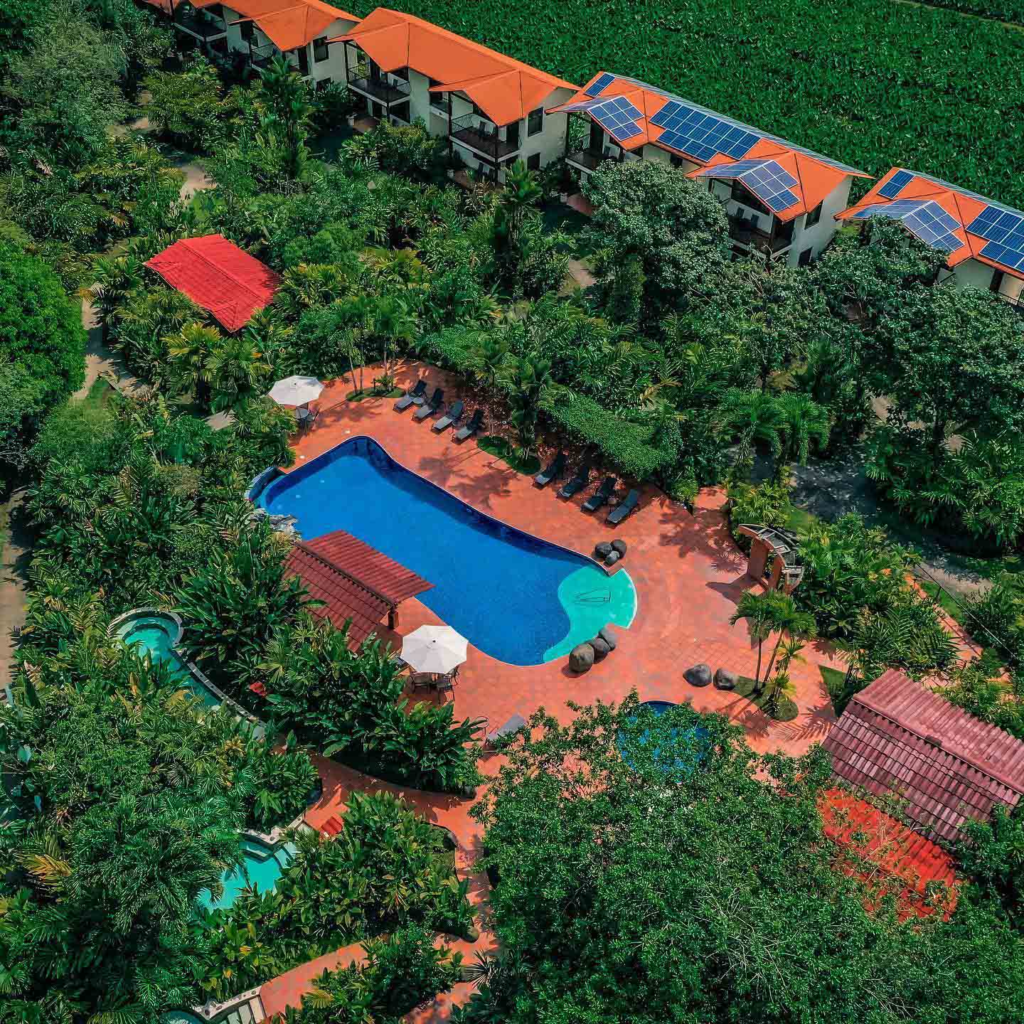 Casa Luna consta de 42 habitaciones de estilo rústico-colonial, equipadas con sistemas de aire acondicionado inverter y una iluminación 100% LED de bajo consumo. 😌💡 Todo esto funciona gracias al revolucionario sistema de paneles solares fotovoltaicos, convirtiendo a Casa Luna en el único hotel en la zona norte de Costa Rica que utiliza energía solar para calentar el agua. 🌞🚿