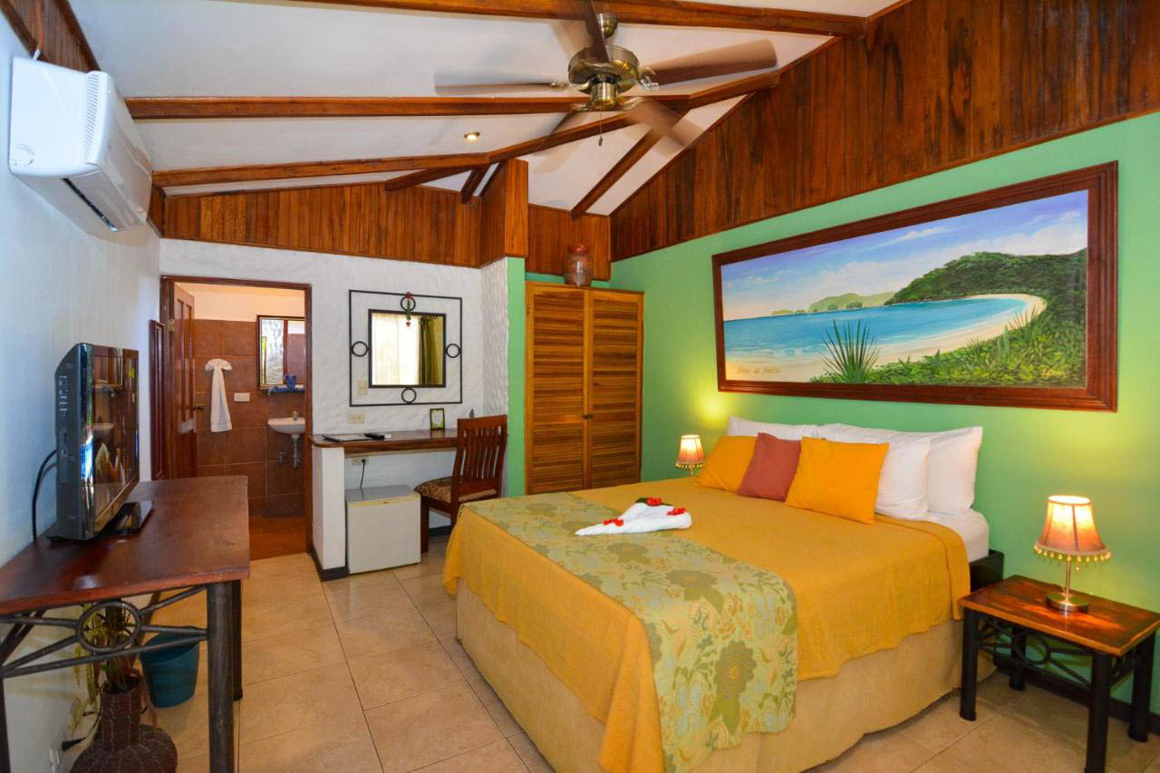 Este encantador hotel cuenta con 16 cómodas habitaciones, o ‘cabinas’, cada una equipada con comodidades modernas como aire acondicionado, refrigerador, ventiladores de techo, caja fuerte y baño privado. Cada cabina también ofrece una encantadora terraza cerca de la piscina, donde los huéspedes pueden relajarse y disfrutar del cálido sol costarricense.