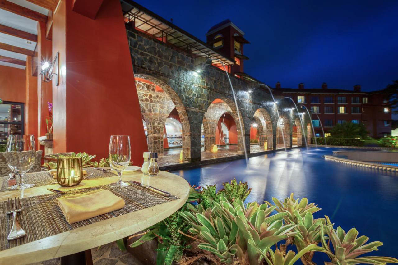 En la intimidad, las elegantes habitaciones del hotel están equipadas con suntuosa ropa de cama, espaciosos baños y lujosos artículos de tocador. Otras comodidades incluyen televisores de pantalla plana, internet de alta velocidad y caja de seguridad. Nuestro hotel Herradura Costa Rica se distingue por sus cinco restaurantes. Visite ZOE para cocina mediterránea; Hacienda Kitchen y Bar Ocho para opciones costarricenses e internacionales; 18 & Greene para deliciosas carnes, pescados y mariscos; y Casa del Café para opciones convenientes como sándwiches y ensaladas.