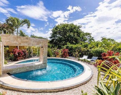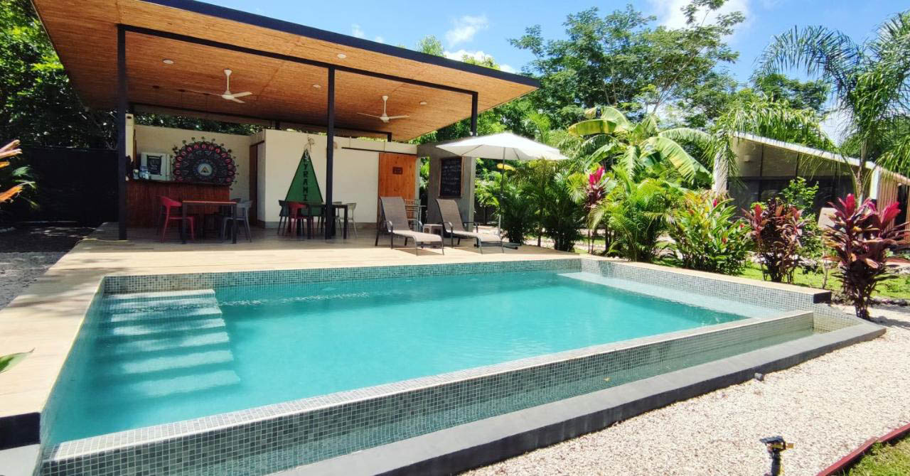 Ahora, imaginemos un día en el Pyramid Lodge Tamarindo. 💭 Puedes comenzar disfrutando del área de picnic con tu familia o amigos. 🧺🍎 Luego, refrescarte en la piscina al aire libre disponible todo el año. 🏊♀️💦 Y no olvidemos las vistas increíbles de las montañas y la piscina que puedes disfrutar mientras te relajas. 🏞️🏊