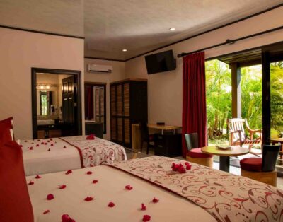 Dentro del resort, parejas, familias y grupos de amigos encontrarán todo lo que necesitan para disfrutar de la perfecta experiencia de viaje en Costa Rica. 🇨🇷🌳🌺 Con su ambiente rústico pero limpio y moderno, hermosos jardines botánicos, acabados de madera local, piedras de río y comida tradicional costarricense, quienes visiten Volcano Lodge, Hotel & Thermal Experience se deleitarán con una experiencia auténticamente costarricense. 🍽️🛏️🛋️